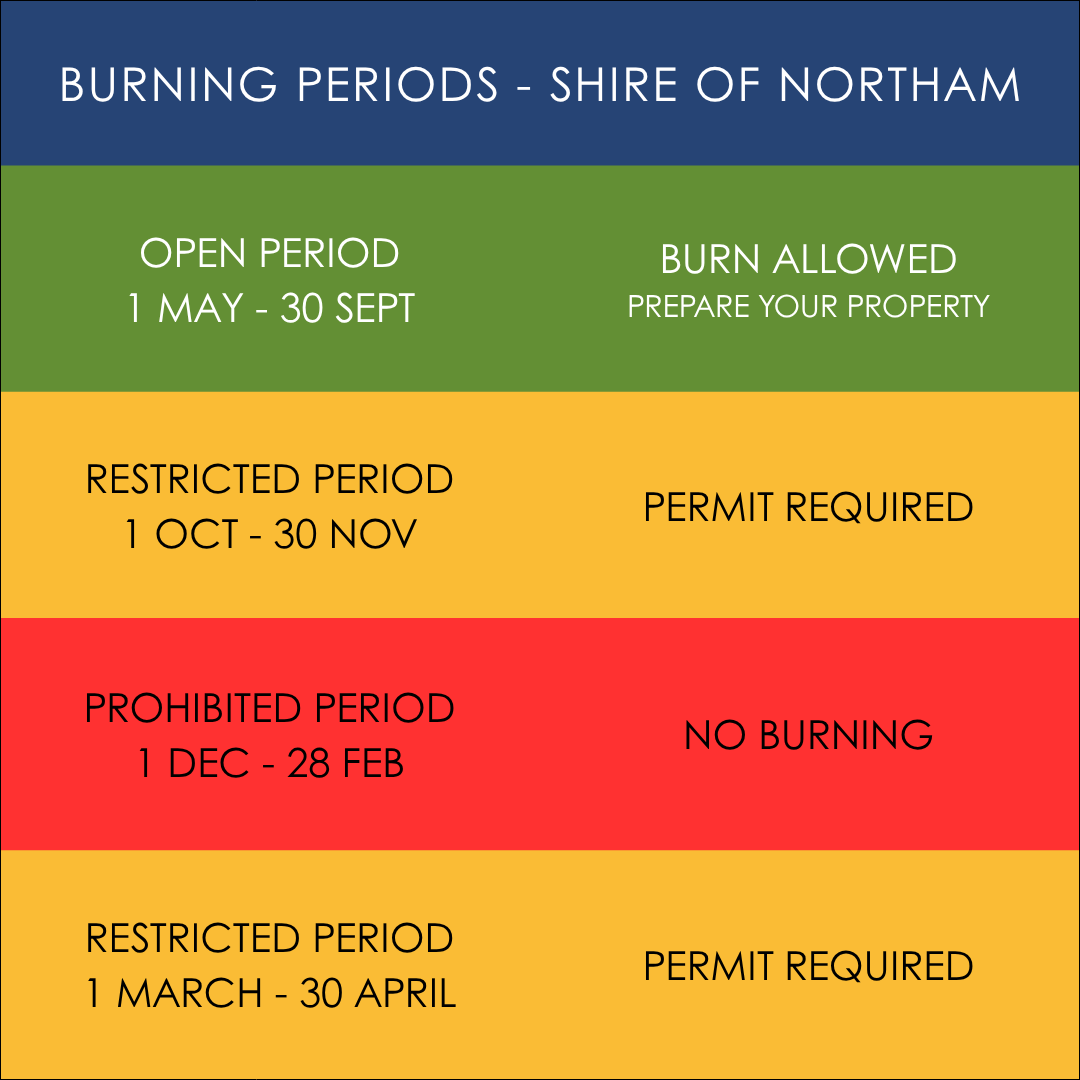 The Shire of Northam runs the Restricted burning period under 2 labels: