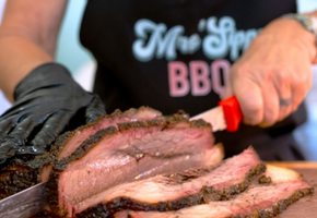 The menu features barbecue with popular sides, burgers, loaded fries, po bois and hoagies.